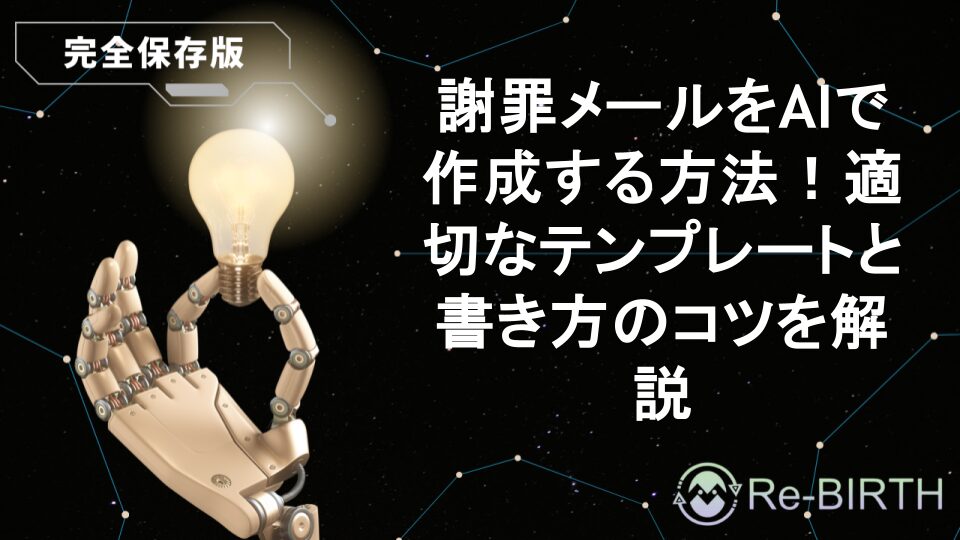 謝罪メールの作成にAIを活用する方法を詳しく解説します。ChatGPTやClaude等のAIツールを使った効果的な謝罪メールの書き方、シーン別テンプレート、注意点まで実践的な内容をプロが教えます。ビジネスシーンで失敗しない謝罪メール作成のコツを身につけましょう。