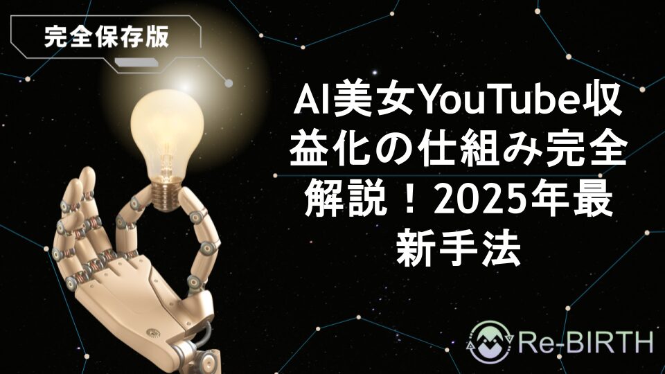 AI美女系YouTubeチャンネルの収益化仕組みを徹底解説。動画作成からマネタイズまでの全工程、必要なツール、収益化条件、注意点を分かりやすく紹介。AI技術を活用した新しい副業として注目される分野の始め方から運営のコツまで、初心者向けに詳しく解説します。