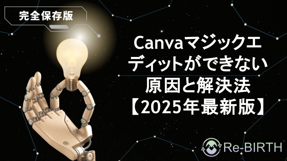 Canvaのマジックエディット機能が使えない時の原因と対処法を詳しく解説。ブラウザの問題、アカウントの種類、技術的トラブルまで、すべての解決策をステップバイステップで紹介します。AI画像編集を快適に使うためのコツも満載です。