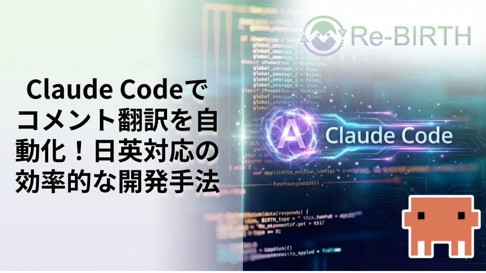Claude Codeを活用してソースコード内のコメントを日英翻訳する方法を解説。開発効率を向上させる自動翻訳テクニックから実践的な応用例まで、国際的な開発現場で役立つ翻訳自動化の手法を詳しく紹介します。グローバル開発に必須のスキルを身につけましょう。