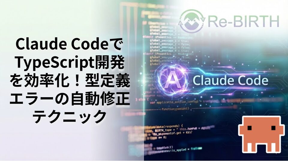 Claude CodeでTypeScript開発の生産性を劇的に向上させる方法を解説。型定義エラーの自動検出・修正機能、実際のコード例、ベストプラクティスまで包括的に紹介。フロントエンド開発者必見のAI活用術で、複雑な型エラーを瞬時に解決し、品質の高いコードを効率的に作成する実践的なテクニックを詳しく説明します。