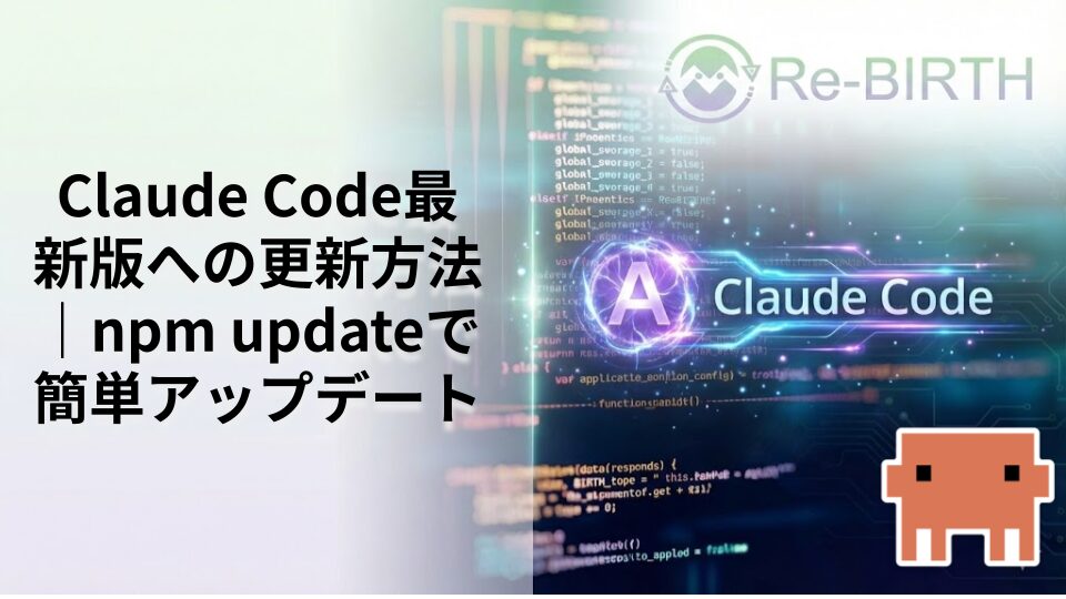 Claude Codeを最新版にアップデートする方法を詳しく解説。npm updateコマンドの使い方、バージョン管理、トラブルシューティングまで初心者にも分かりやすく説明します。効率的な開発環境を維持するための必須知識をお届けします。