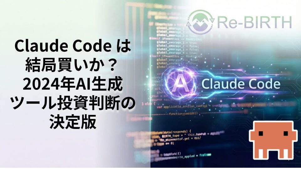 Claude Codeの投資価値を徹底検証。機能性、コスパ、将来性、競合比較から導く購入判断基準。AI生成ツール市場での位置づけと、個人・企業それぞれの導入メリット・デメリットを詳細分析。あなたにとって本当に「買い」なのかを明確に結論付けます。