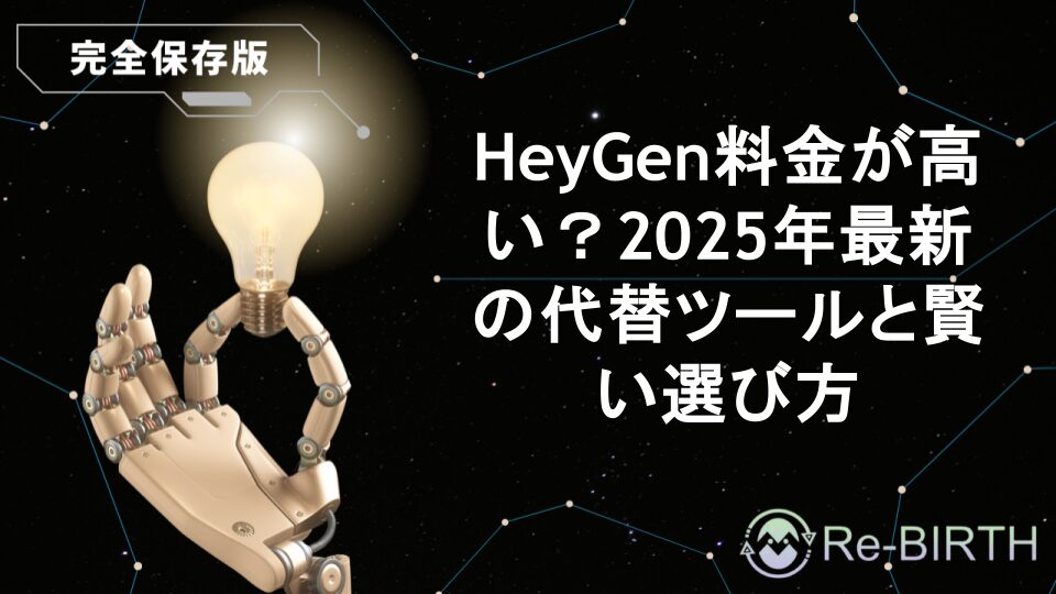 HeyGenの料金が高いと感じる方必見!2025年最新の代替ツールを詳しく比較し、用途別の最適解を提案します。無料プランから始められるツールや、コスパ重視の選択肢まで、AI動画生成ツールの賢い選び方を専門家が解説。あなたの目的と予算に合った最適なツールが見つかります。