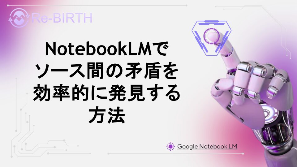 NotebookLMを使ってソース間の食い違いや矛盾を効率的に検出する方法を詳しく解説。複数の文書から異なる情報を見つけ出し、信頼性の高い情報整理を実現するための実践的なテクニックとコツを紹介します。検証作業の精度向上に役立つ具体的な手順も含めて説明。