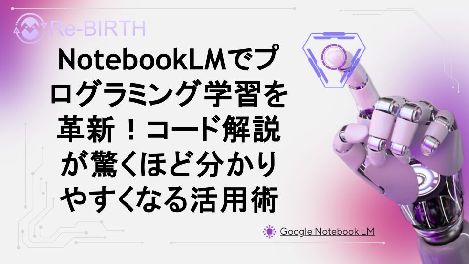 GoogleのNotebookLMを使ったプログラミング学習の新しいアプローチを解説。複雑なコードやスクリプトの理解が劇的に向上する具体的な活用方法から、実際の学習効果まで、プログラミング初心者から上級者まで役立つ情報をお届けします。AI生成ツールの力でコード学習を効率化しましょう。