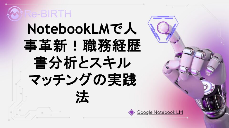 GoogleのNotebookLMを活用した人事・採用業務の効率化手法を解説。候補者の職務経歴書分析からスキルマッチング、面接準備まで、AI生成ツールで採用プロセスを劇的に改善する具体的な活用法とワークフローを詳しく紹介します。