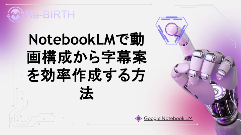 NotebookLMを活用して動画の構成案から効率的に字幕テキストを生成する方法を詳しく解説。YouTube動画制作の時短テクニックから実践的な活用事例まで、AI生成ツールを使った字幕作成のノウハウを紹介します。動画クリエイター必見の最新ワークフローをマスターしましょう。