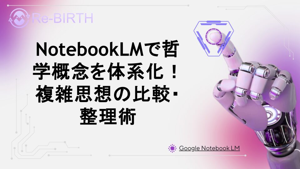 NotebookLMを活用して哲学・思想分野の複雑な概念を効率的に比較・体系化する方法を詳しく解説。カント、ニーチェ、デカルトなど難解な哲学理論の整理から、現代思想の理解まで、学習・研究を劇的に向上させるテクニックをご紹介します。