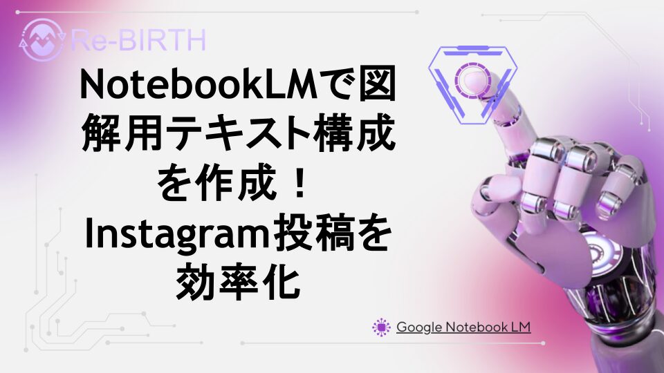 NotebookLMを使ってInstagram図解投稿用のテキスト構成を効率的に作成する方法を徹底解説。AI活用でSNS運用を劇的に改善し、エンゲージメント向上につながる質の高いコンテンツ制作のコツを具体例付きで紹介します。