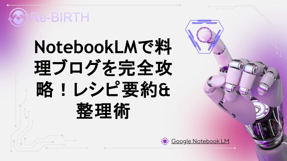 NotebookLMを使って料理ブログやレシピサイトの情報を効率的に整理・要約する方法を詳しく解説。散らばったレシピ情報をAIで一元管理し、オリジナルレシピ集を作成するライフハック術をご紹介します。料理好き必見の時短テクニック満載です。