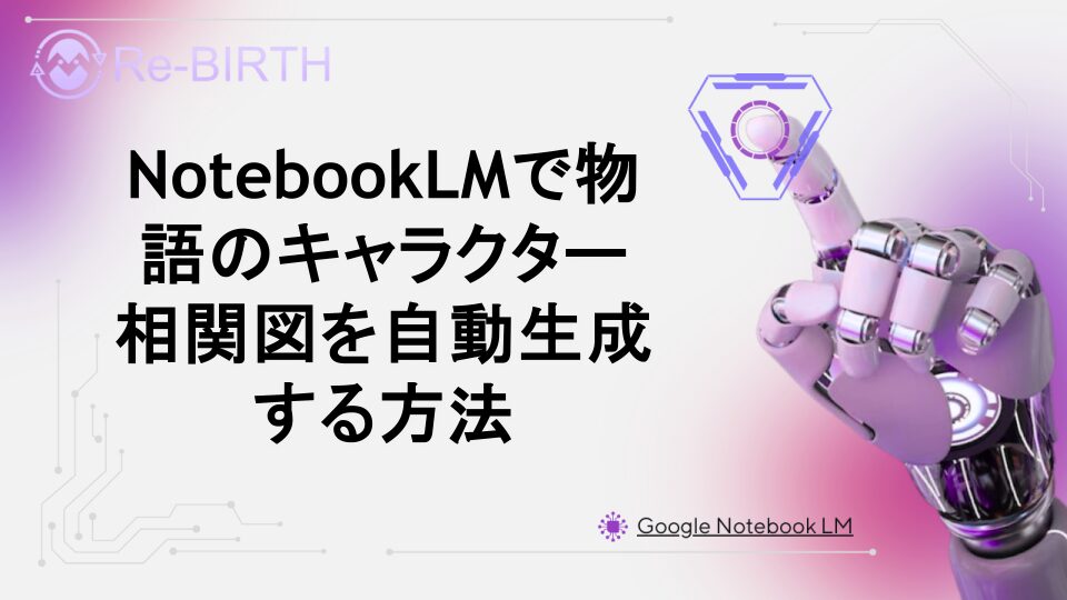 小説や脚本の登場人物の関係性を整理したい創作者必見!NotebookLMを活用して、キャラクターの属性や相関関係を自動抽出し、効率的にデータベース化する実践的な手法を詳しく解説します。創作活動の生産性向上に役立つAI活用術をマスターしましょう。