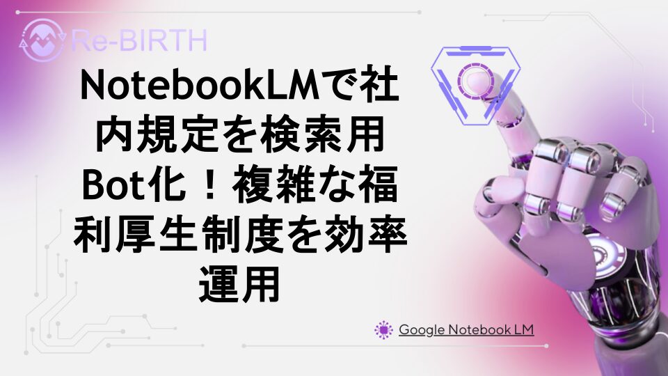 複雑な福利厚生制度や社内規定の管理に悩む企業必見!NotebookLMを活用した検索用Bot化で、従業員の問い合わせ対応を効率化し、人事業務の負担を大幅削減する具体的な方法を解説。AI活用で社内制度運用を革新しましょう。