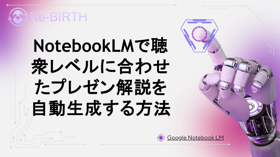 このような課題を解決する革新的なソリューションとして注目されているのが、GoogleのAI生成ツール「NotebookLM」です。NotebookLMは、大量の情報を効率的に処理し、聴衆のレベルに応じた解説を自動生成できる画期的なツールとして、プレゼンテーション準備の新たなスタンダードを確立しています。