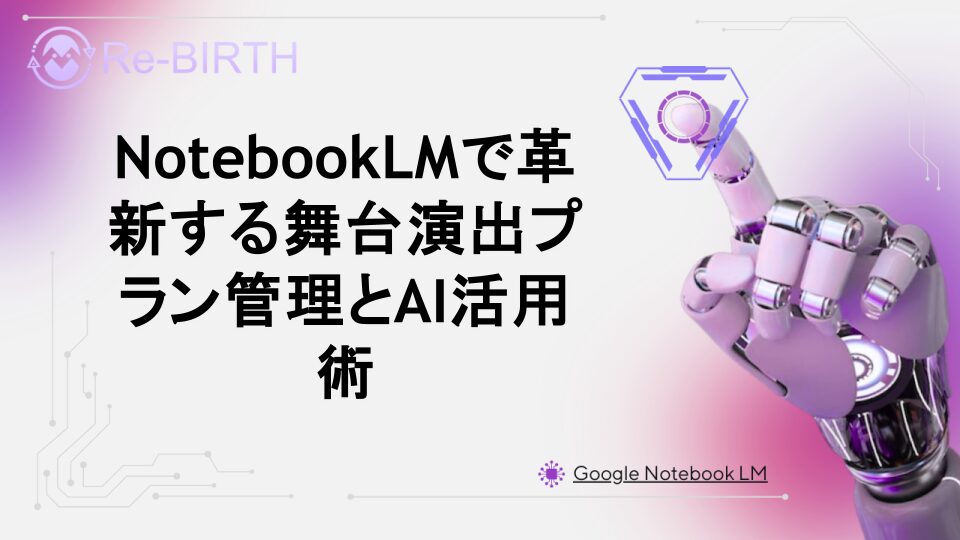 NotebookLMを活用した舞台演出プラン作成・比較から照明・音響指示書の整理まで、AI生成ツールによる効率的な舞台制作ワークフローを詳しく解説。演出家や舞台スタッフ必見のデジタル活用術を紹介します。