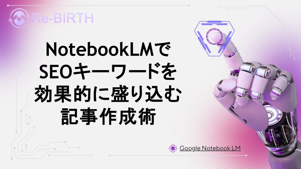 NotebookLMは、単なる文章生成ツールではありません。資料やデータを基に、論理的で構造化された記事を作成できる画期的なツールです。この記事では、NotebookLMを活用してSEOキーワードを効果的に盛り込んだ記事作成を行う具体的な方法を詳しく解説します。