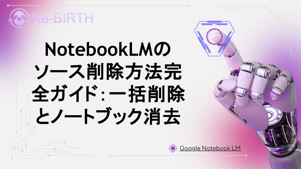 NotebookLMでソースやノートブックを削除する方法を徹底解説。個別削除から一括削除まで、効率的な管理方法とトラブル対処法も紹介。データ整理で作業効率を向上させましょう。