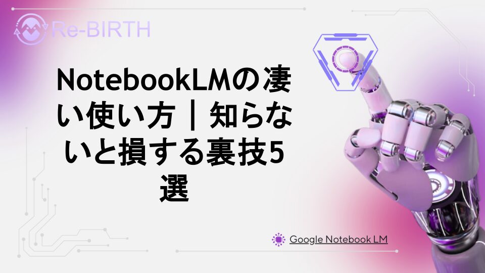 GoogleのNotebookLMを徹底活用!一般的な使い方だけでなく、知る人ぞ知る裏技まで詳しく解説。文書分析からポッドキャスト生成まで、NotebookLMの真の実力を引き出す5つの凄い活用法をお教えします。AI生成ツールの可能性を最大限に活用したい方必見です。