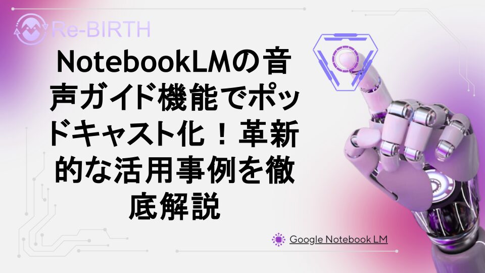 NotebookLMの音声ガイド(Studio)機能を使ったポッドキャスト化の活用事例を詳しく紹介。会話形式の音声コンテンツ生成により、ビジネス資料や研究成果を魅力的な音声コンテンツに変換する方法から、教育現場での活用まで、実践的な使い方を解説します。