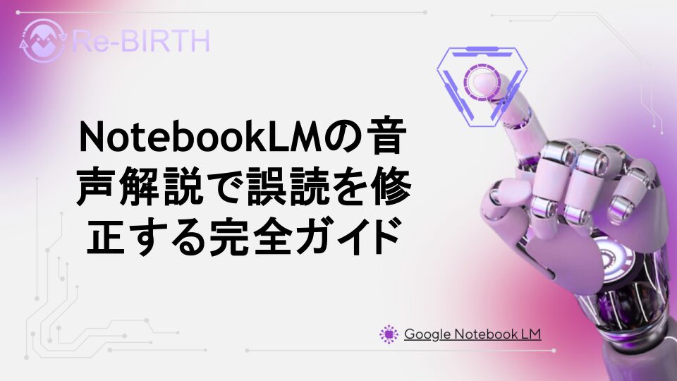 NotebookLMのStudio音声解説機能で発生する誤読問題を解決する方法を詳しく解説。プロンプト調整や事前準備のテクニックを活用して、より自然で正確な音声コンテンツを作成するための実践的なガイドです。