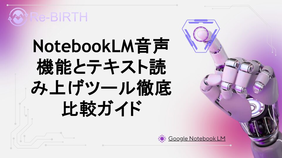 NotebookLMの音声解説機能と他のテキスト読み上げツールを詳しく比較。精度、音質、使いやすさ、コストなど多角的に分析し、最適な読み上げツール選びをサポートします。AI生成音声の最新動向も解説。