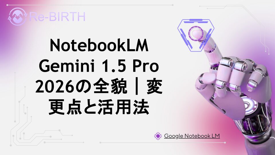 NotebookLM Gemini 1.5 Pro 2026の革新的な変更点を徹底解説。処理能力の向上、新機能、UI改善、音声生成機能の進化など、最新モデルの特徴と実践的な活用テクニックを詳しく紹介します。AI生成ツールの新時代を体験しましょう。