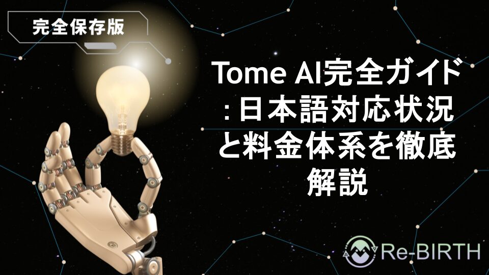 AI搭載プレゼンツール「Tome AI」の日本語対応状況、無料版・有料版の料金プラン、使い方を詳しく解説。2025年最新情報で、ビジネス資料作成を効率化したい方に向けて、機能比較から実践的な活用方法まで分かりやすく紹介します。プレゼン作成時間を大幅短縮できる革新的ツールの全てが分かります。